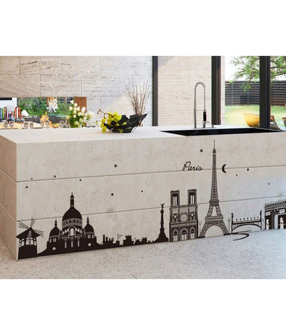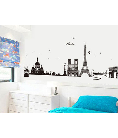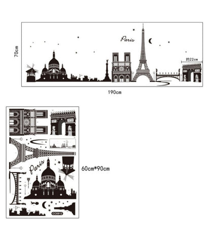 City Skyline Paris Eiffel Tower Silhouette Black Color Border Design for Hall